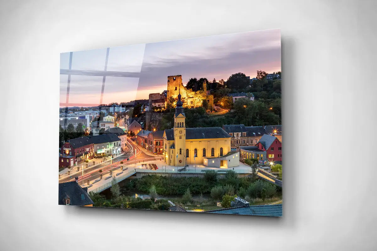 Hesperange castle and town at sunset gallery print acrylic