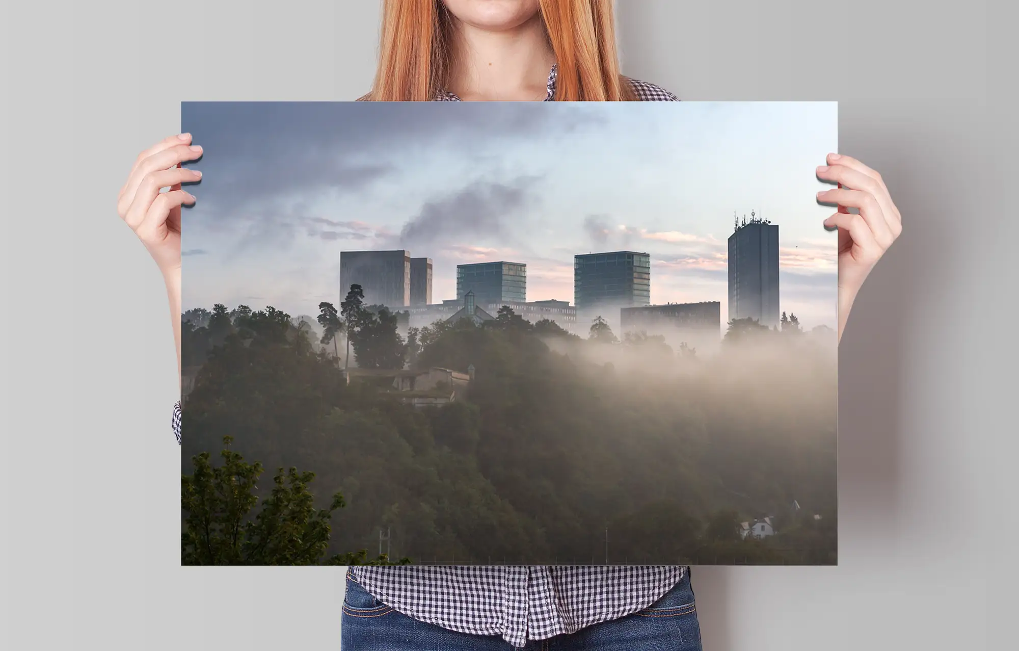 Kirchberg in Luxembourg city foggy poster