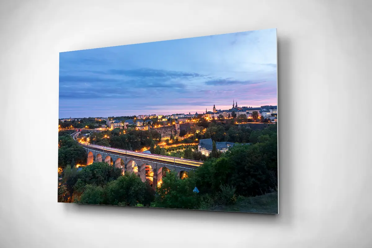 Luxembourg city skyline sunset Pfaffenthal rigid poster