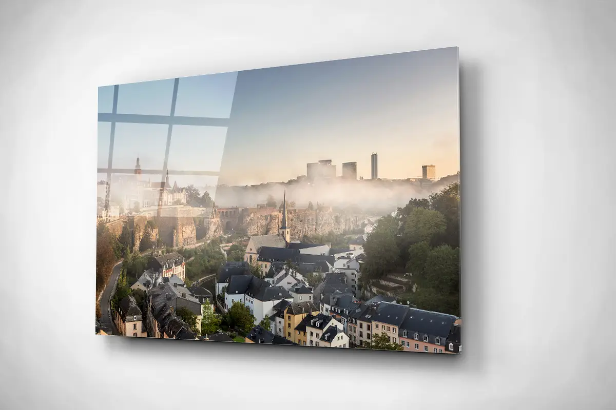 Luxembourg city skyline cityscape in fog gallery print acrylic