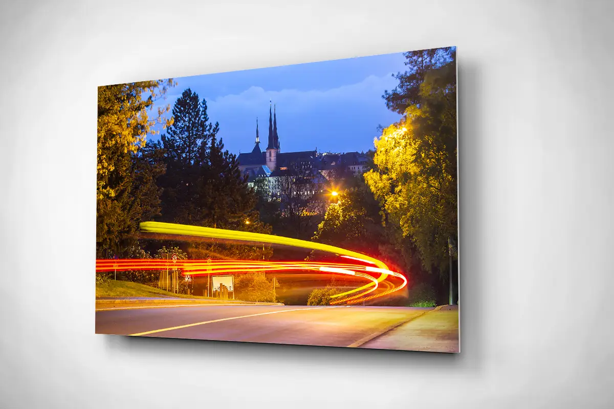 Luxembourg city night Notre Dame rigid poster