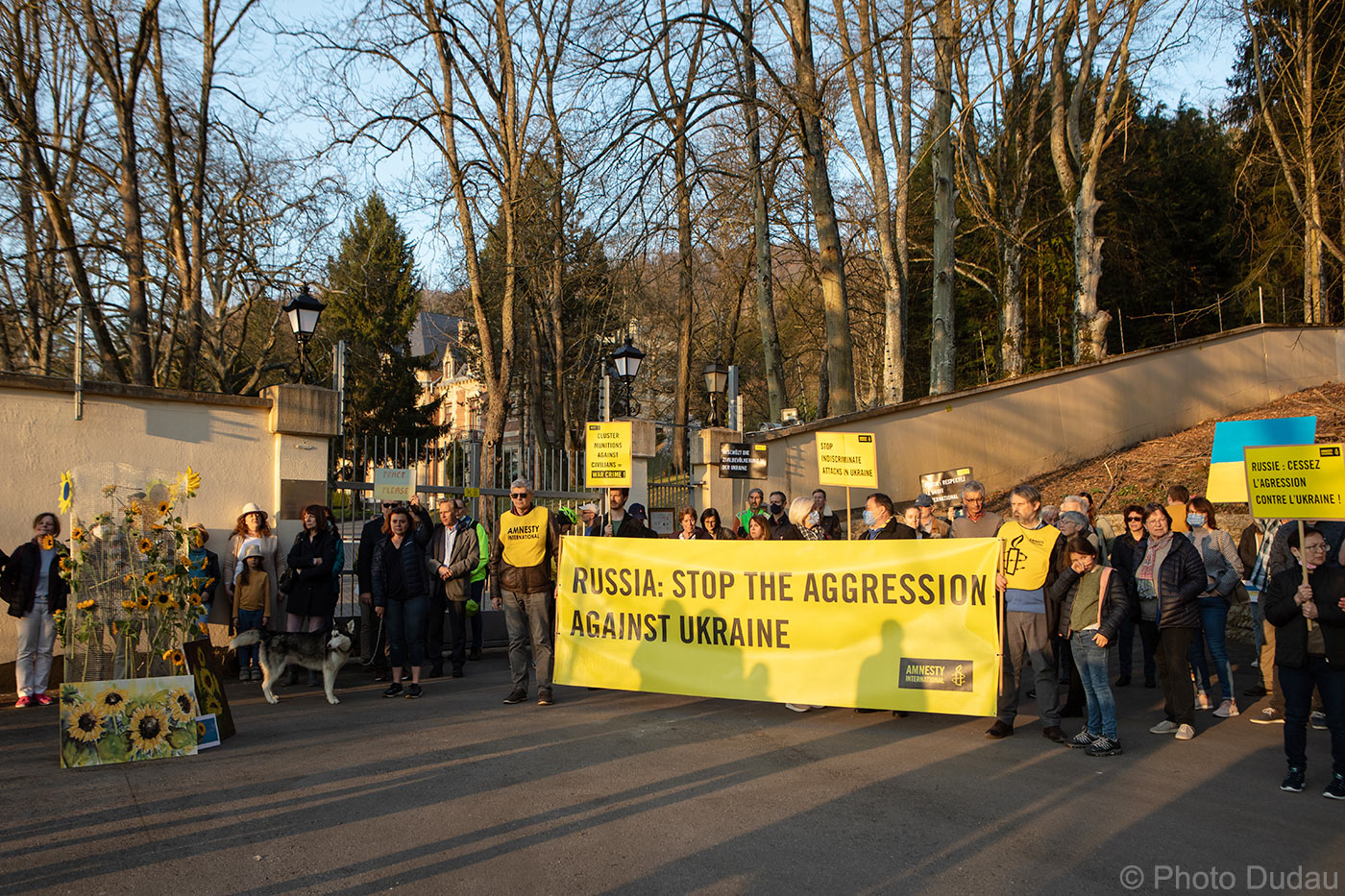 Amnesty International protest in front of Russian Embassy in Luxembourg city.