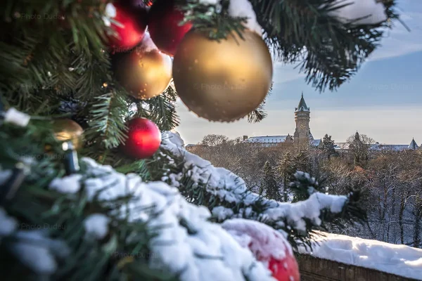 Arbre de Noël décoré dans la ville de Luxembourg en hiver