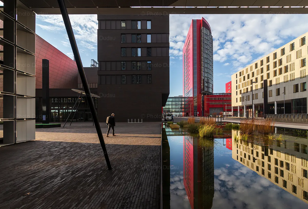 Commercial photoย of modern architecture buildings and University of Luxembourg buildings in Belval, Esch-sur-Alzette, Luxembourg