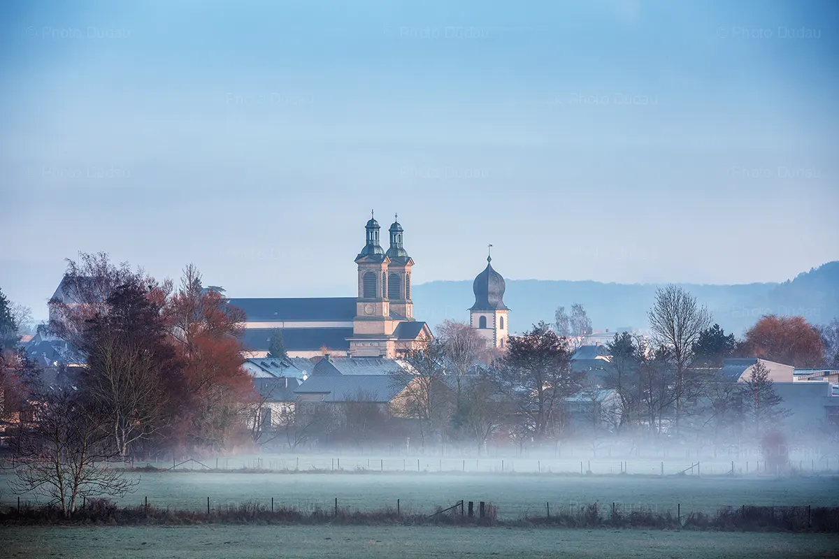 Mersch town during a foggy autumn morning